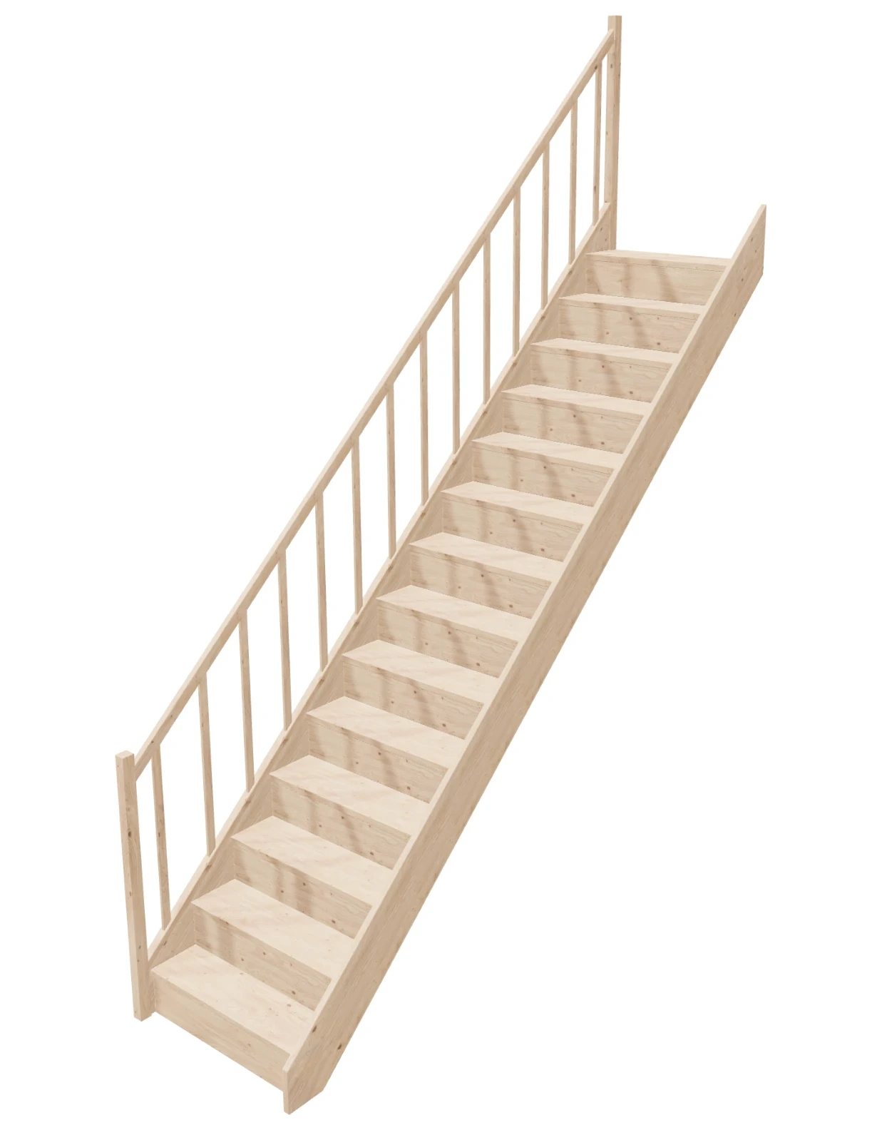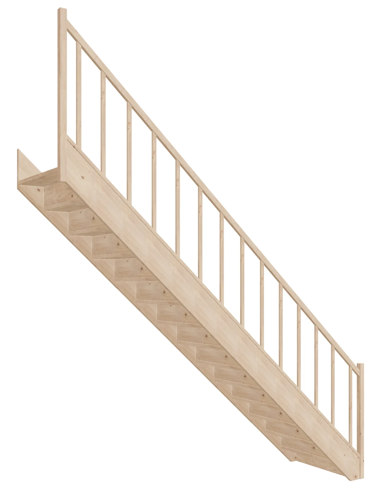 - Material Quality: Our stairs are made from lightweight and durable spruce wood, which guarantees not only solidity but also a beautiful natural appearance. The wood is certified with PEFC. The components are processed on professional CNC machines, saws, and sanders.