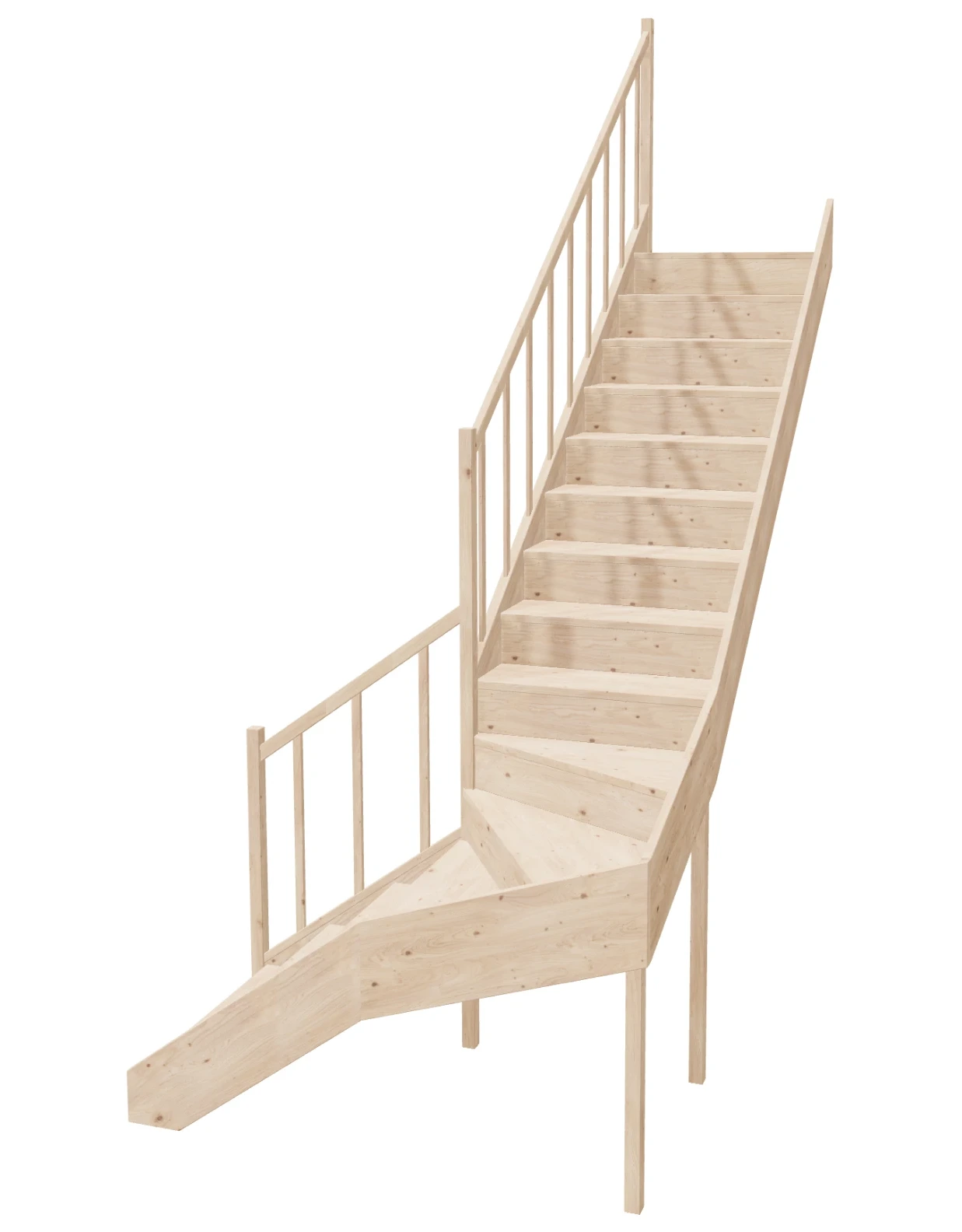 - Material Quality: Our stairs are made from lightweight and durable spruce wood, which guarantees not only solidity but also a beautiful natural appearance. The wood is certified with PEFC. The components are processed on professional CNC machines, saws, and sanders.