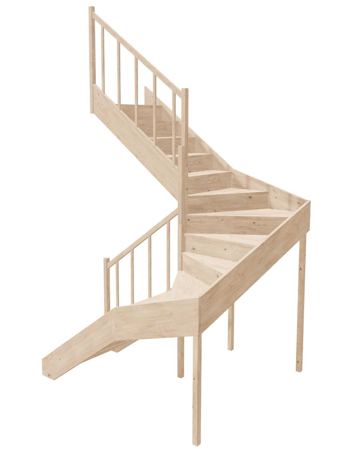 ✔️ Wooden winder stairs – double-flight
