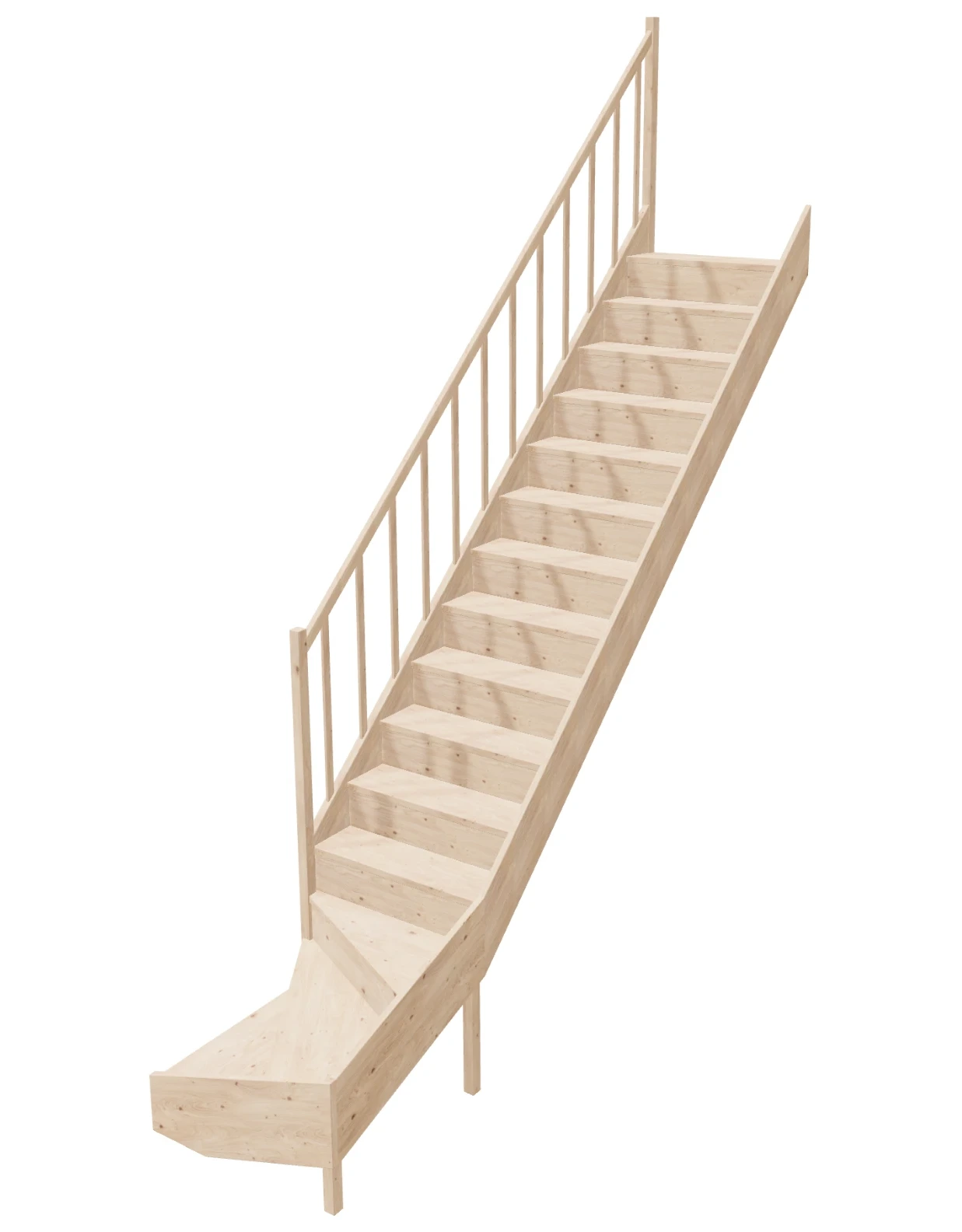 - Material Quality: Our stairs are made from lightweight and durable spruce wood, which guarantees not only solidity but also a beautiful natural appearance. The wood is certified with PEFC. The components are processed on professional CNC machines, saws, and sanders.