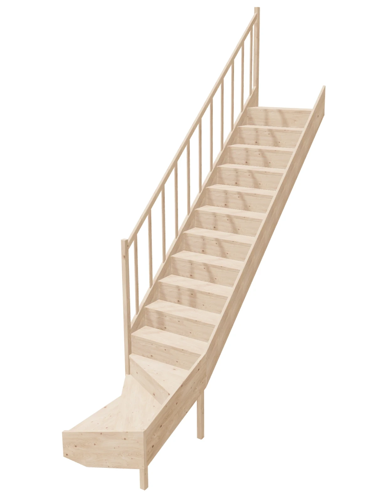 - Material Quality: Our stairs are made from lightweight and durable spruce wood, which guarantees not only solidity but also a beautiful natural appearance. The wood is certified with PEFC. The components are processed on professional CNC machines, saws, and sanders.