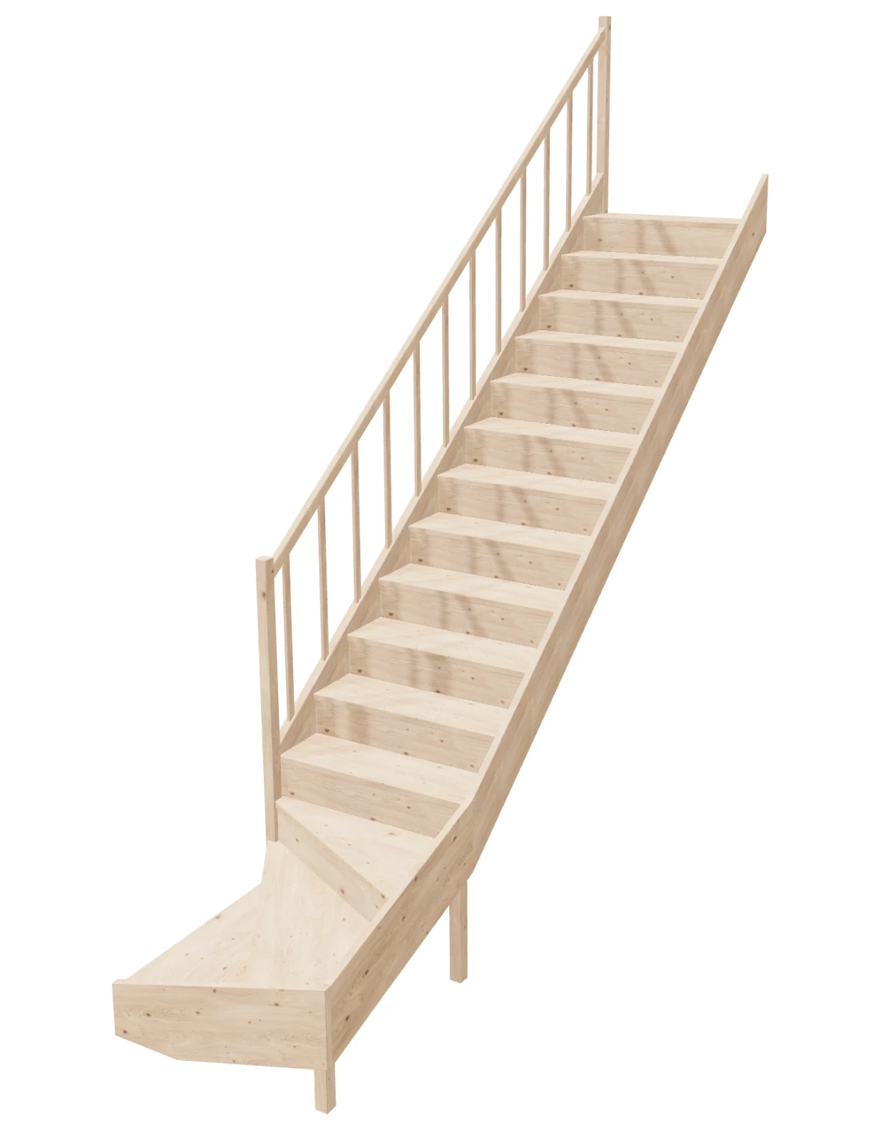 - Material Quality: Our stairs are made from lightweight and durable spruce wood, which guarantees not only solidity but also a beautiful natural appearance. The wood is certified with PEFC. The components are processed on professional CNC machines, saws, and sanders.