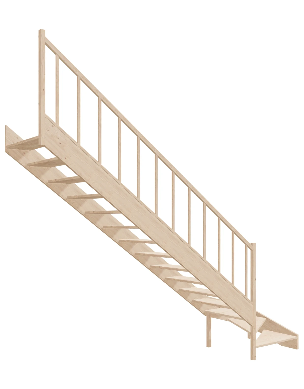 - Material Quality: Our stairs are made from lightweight and durable spruce wood, which guarantees not only solidity but also a beautiful natural appearance. The wood is certified with PEFC. The components are processed on professional CNC machines, saws, and sanders.