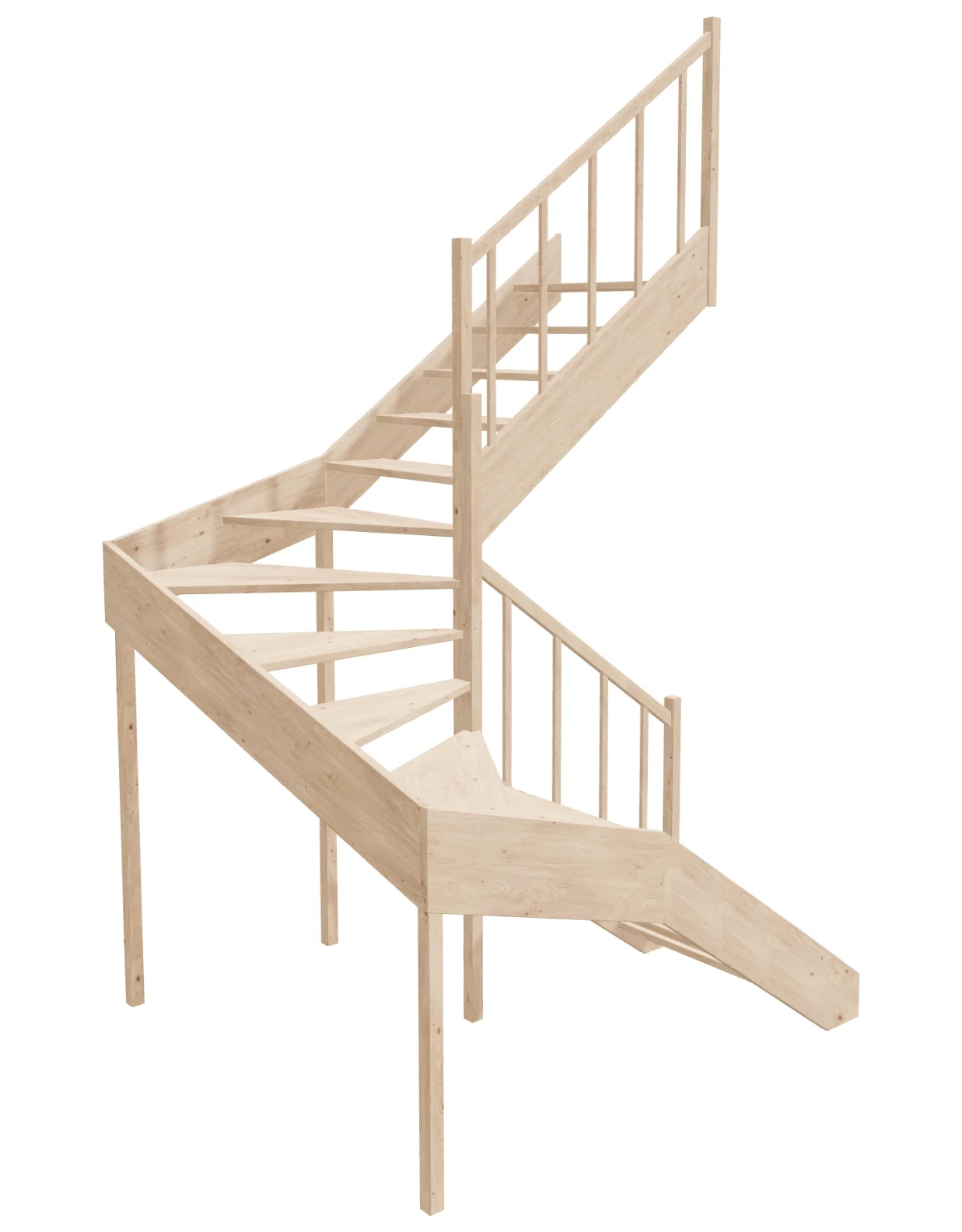 ✔️ Wooden winder stairs – double-flight