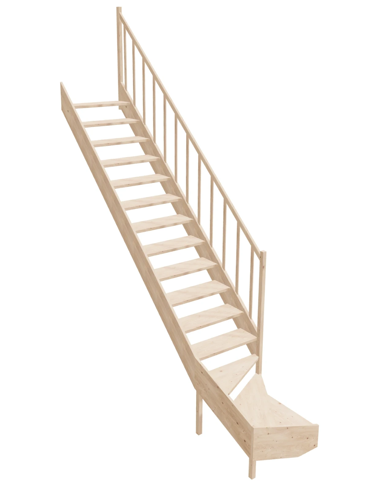 - Material Quality: Our stairs are made from lightweight and durable spruce wood, which guarantees not only solidity but also a beautiful natural appearance. The wood is certified with PEFC. The components are processed on professional CNC machines, saws, and sanders.