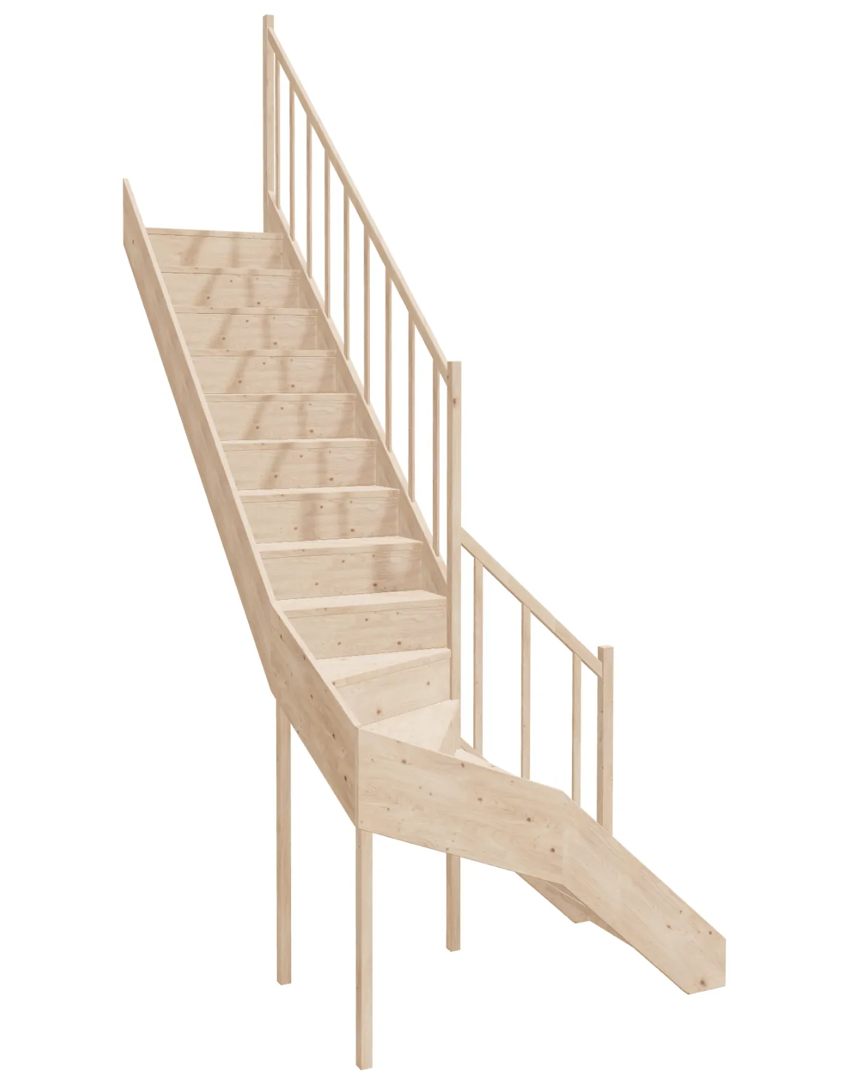 - Kvalita materiálu: Naše schody sú vyrobené z ľahkého a zároveň odolného smrekového dreva, ktoré zaručuje pevnosť aj krásny prirodzený vzhľad. Drevo je certifikované PEFC. Jednotlivé komponenty sú opracované na profesionálnych CNC strojoch, pílach a brúskach.